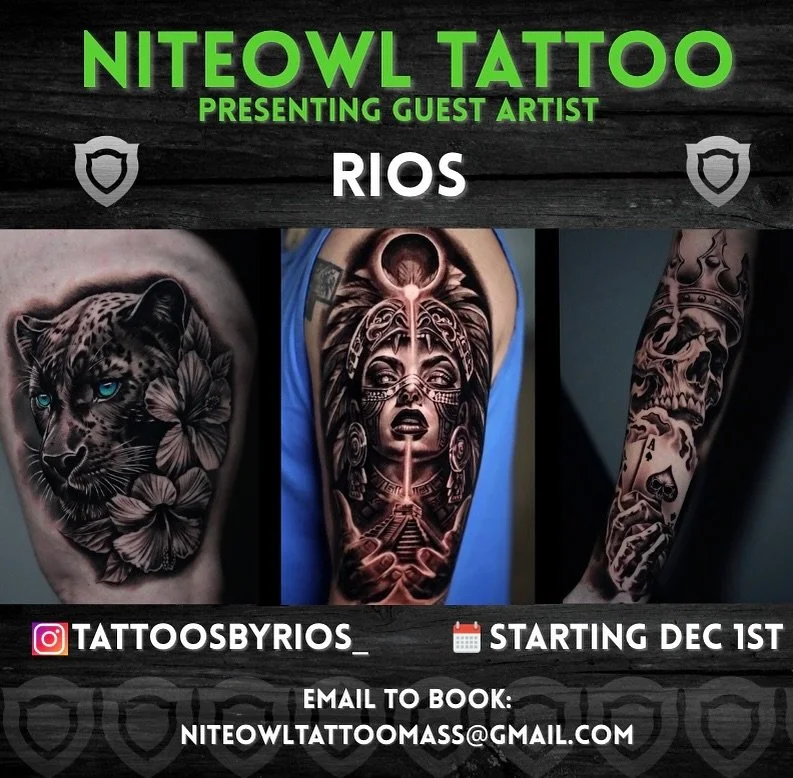 NiteOwl Tattoo features a crew of incredibly talented award-winning artists that produce detailed custom work. You can browse the portfolios of our resident artists including Timmy B, Lindsay Baker, Patrick Quirk, and Roxy P - as well as some of the frequent guest artists that will be visiting our shop. Follow us on Instagram and Facebook to see what our artists are posting on a daily basis, as well as our main shop pages that features our resident artists’ work, guest artists, and photos of the shop! Be on the lookout for special functions within the community and charity events!